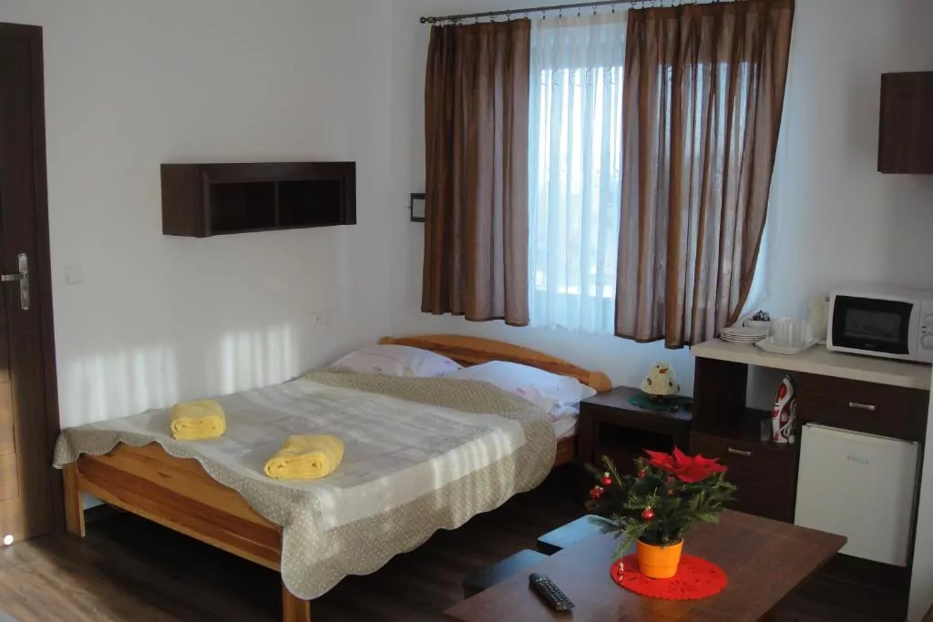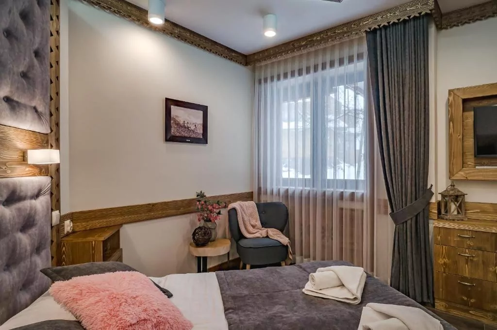 Wieczorem możesz tu zrelaksować się przy ognisku po całym dniu na stoku, a dzięki bliskości Term Bukovina (ok. 1 km) — także wybrać się na kąpiel w gorących źródłach. Goście chwalą te pokoje blisko stoku w Bukowinie Tatrzańskiej za miłą obsługę i czyste pokoje.
