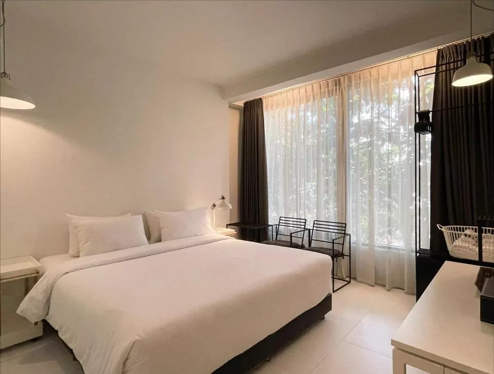 W ofercie znajdują się klimatyzowane pokoje oraz apartamenty urządzone w eleganckiej, biało-czarnej stylistyce. Wyposażone są w szerokie i wygodne łóżka, biurko, minibar, prywatną łazienkę, telewizor z płaskim ekranem oraz zapewniają dostęp do darmowego Wi-Fi. Z okien widać góry lub miasto.