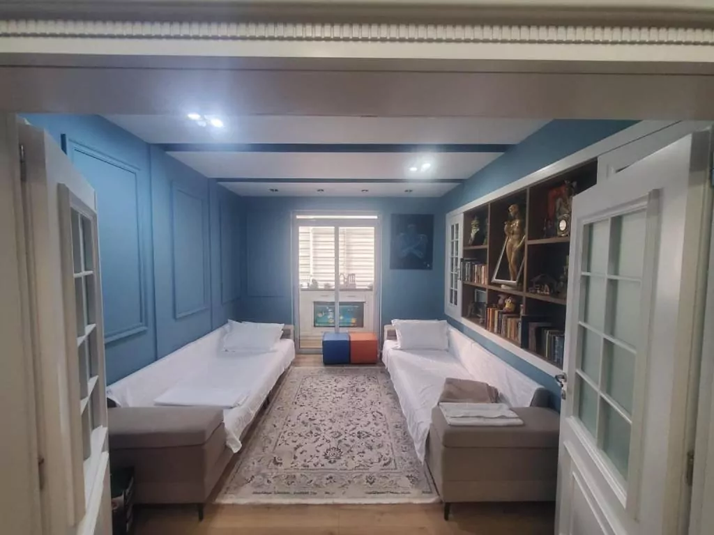 W mieszkaniu jest wiele dekoracji – znajdziesz tu obrazy, akwarium, figurki i inne artystyczne akcenty. Jest jednak przestronne i komfortowe. Są tu 2 sypialnie z 1 podwójnym i 2 pojedynczymi łóżkami oraz salon z 2 sofami, stołem, gitarą, książkami i telewizorem z Netflixem.