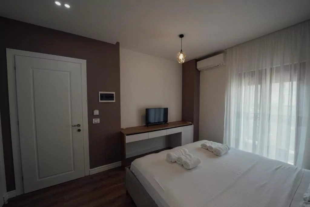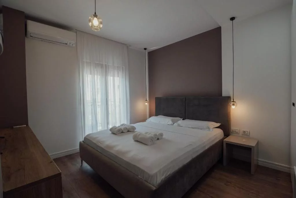Apartamenti8 Korca to przestronny apartament z 2 sypialniami, 500 m od centrum Korczy. Dobrze sprawdzi się dla rodzin lub grup znajomych – ma 74 m2 i pomieści max. 6 osób. Leży przy ulicy z restauracjami i kawiarniami, dlatego to miejsce dla osób, którym nie przeszkadza miejski hałas.