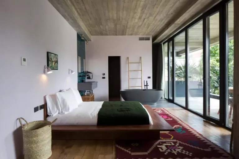 Do wyboru są pokoje 2 i 3-osobowe o różnym standardzie. Każdy ma klimatyzację, Wi-Fi, telewizor, szafę i łazienkę z wanną lub prysznicem, zestawem kosmetyków i szlafrokami. Te droższe mają też część wypoczynkową i panoramiczne okna z widokiem na góry, a 1 także kominek.