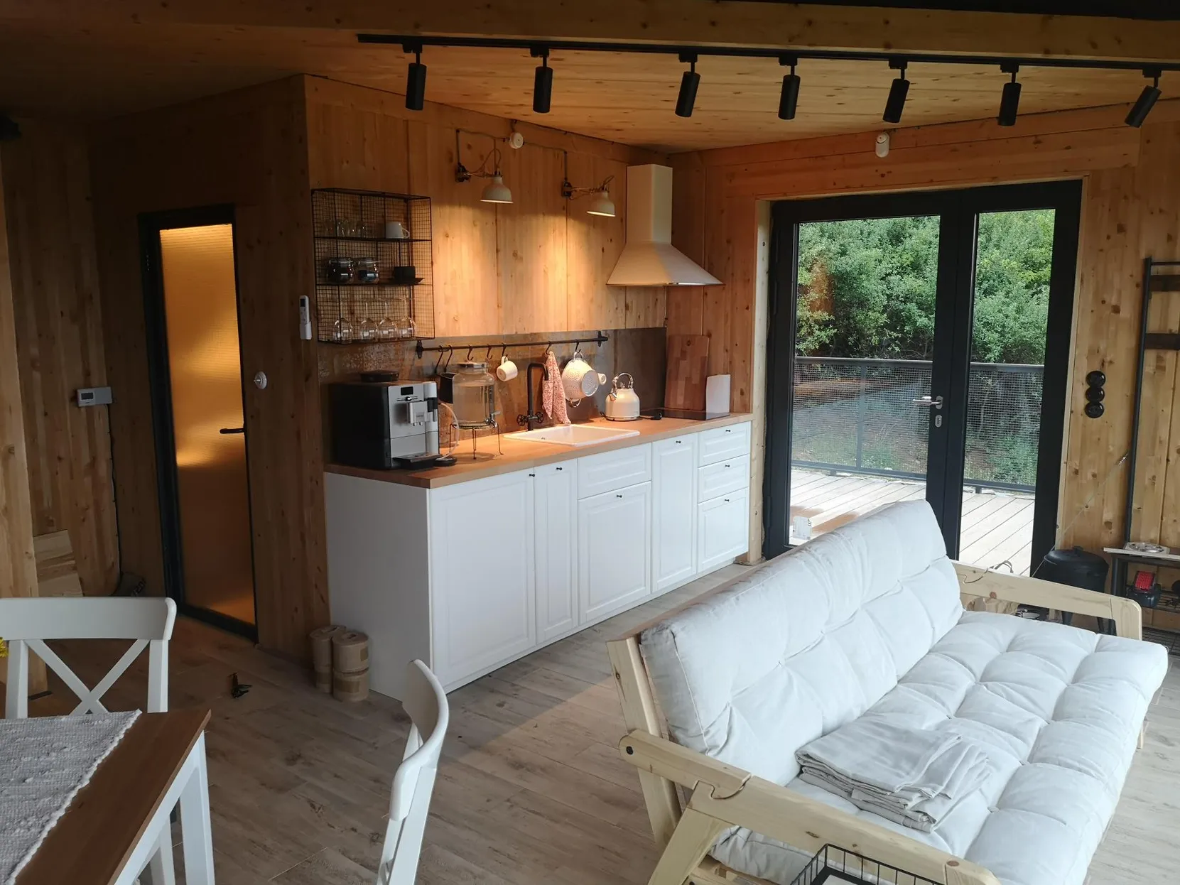 Do wyboru masz 3 małe, ale dobrze wyposażone domki dla max. 4 osób. Jest w nich prywatny aneks kuchenny z płytą, lodówką, zmywarką, ekspresem do kawy i przyborami kuchennymi. W prywatnej łazience jest prysznic, ręczniki, ekologiczne kosmetyki i suszarka do włosów.