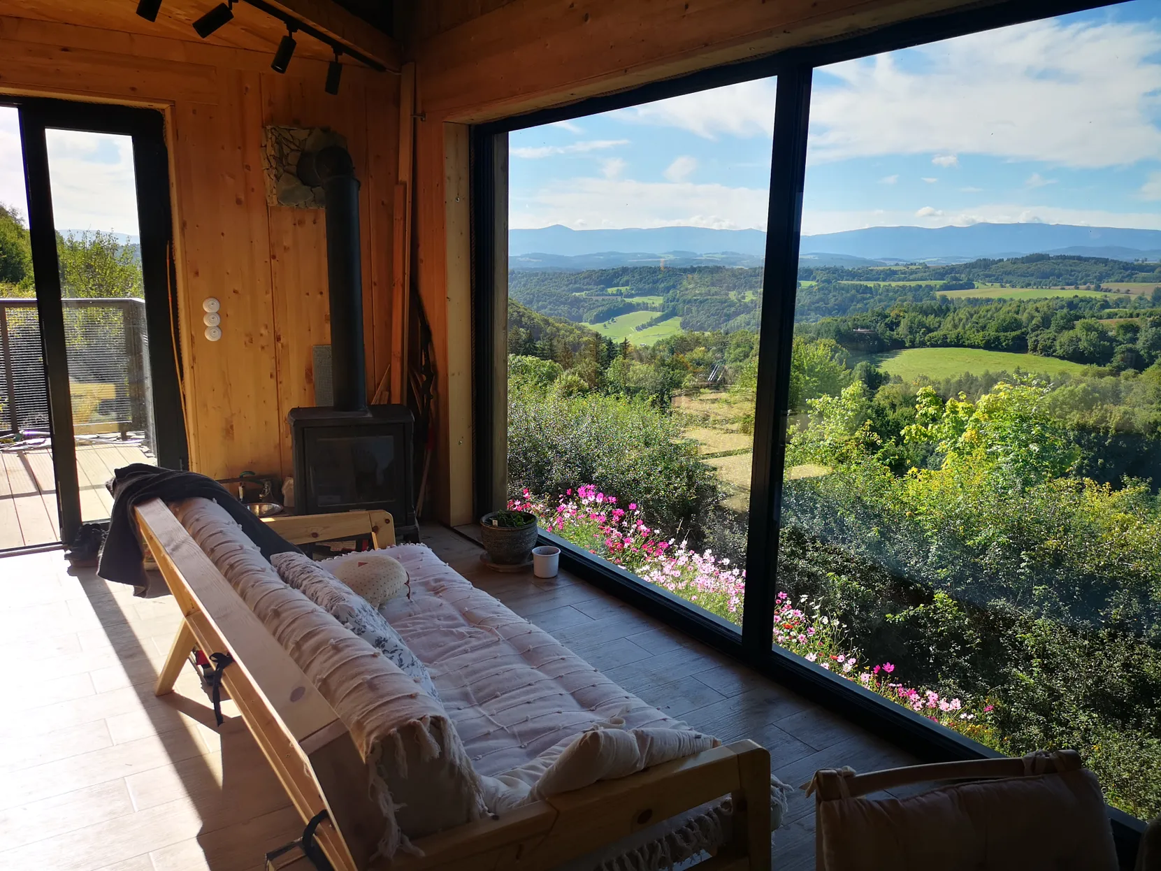 Z salonu przez ogromne okno rozpościera się widok na góry. W prywatnej łazience jest prysznic, ręczniki i suszarka do włosów. W domkach jest klimatyzacja, ogrzewanie podłogowe (w Domku Górnym jest też kominek na drewno) i działa w nich Wi-Fi. Jest tu też taras i miejsce na rozpalenie ogniska.