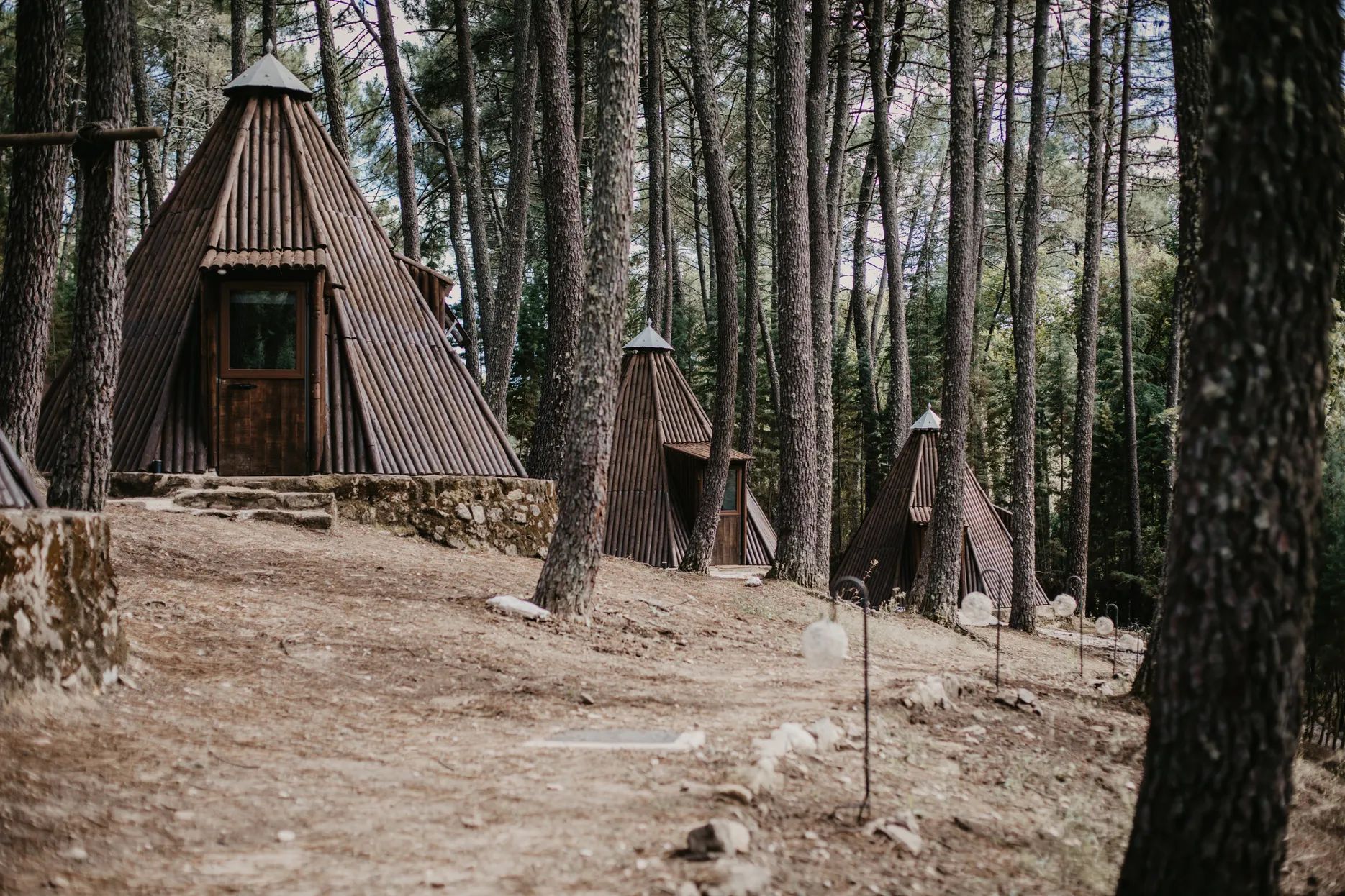 Glamping The Teepee to propozycja na nocleg w drewnianych domkach w stylu teepee w Hiszpanii (okolice Madrytu). Miejsce jest dosyć kameralne, bo jest tu tylko 6 domków. Jedynym hałasem, na jaki tu trafisz, będzie szumiąca rzeka. Na terenie kompleksu jest prywatny parking.