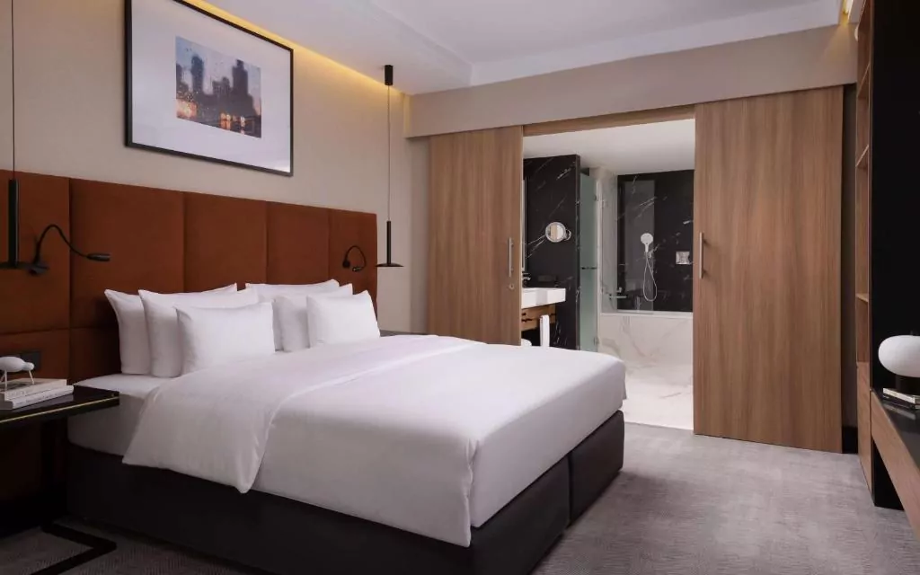 Przestronne i nowoczesne pokoje w hotelu wyposażone są w sejf, ekspres do kawy, duże biurko, kanapę i telewizor z płaskim ekranem. Wszystkie zapewniają dużą łazienkę z suszarką do włosów i do wyboru prysznicem lub wanną. Na miejscu jest też nowoczesna strefa Heart Gym & Wellness z saunami i jacuzzi oraz ofertą masaży.