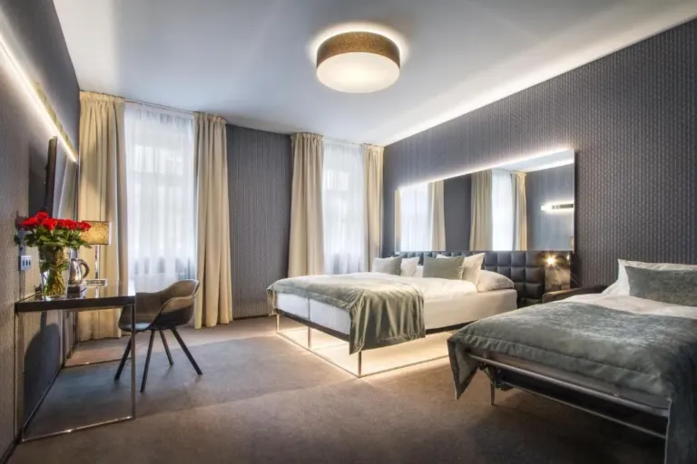 Główny dworzec autobusowy Florenc leży zaledwie 500 m od hotelu. W klimatyzowanych pokojach (max. 4 os.) oprócz telewizora, minibaru i zestawu kawowego znajdują się wielkie, wygodne łóżka, często chwalone przez hotelowych gości.