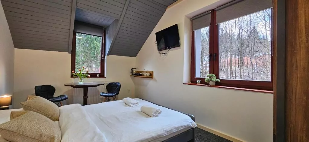 Willa Art to przytulny pensjonat niedaleko stoku w Szklarskiej Porębie. Miejsce jest budżetowe, leży poza centrum i daleko od ruchliwych ulic (jest niesamowicie cicho), a z okien zobaczysz góry i las. Możesz zatrzymać się tu też ze zwierzakiem, a auto zostawisz na darmowym, prywatnym parkingu hotelowym.