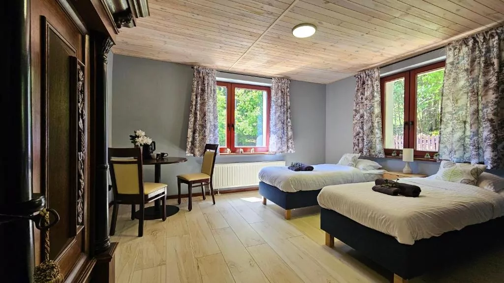 Wystrój przestrzeni wspólnych jest bardzo klimatyczny — właściciele inspirowali się Szkocją i motywami myśliwskimi. Dużym plusem jest też gościnność gospodarzy — możesz liczyć na ich pomoc i życzliwe podejście.