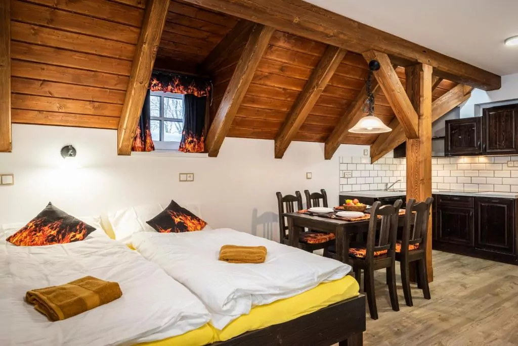 - dla rodzin – Farma Severák to przestronne apartamenty z widokiem na góry, które pomieszczą nawet największe rodziny (max. 8 osób). Jest w nich prywatna łazienka i dobrze wyposażona kuchnia. Dysponują bezpłatnym parkingiem i Wi-Fi. Ośrodek Ski Resort Severák jest 60 m stąd.