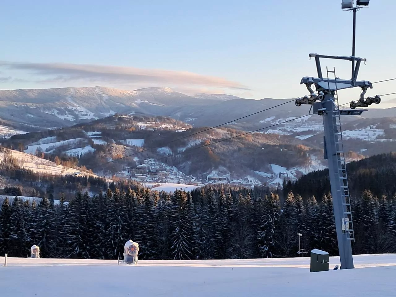 - Ski Areál Tanvaldský Špičák – leży ok. 4 km od Tanvaldu. Oferuje najdłuższe trasy w Górach Izerskich, o różnym stopniu trudności. Jest tu 9 wyciągów i 2 kolejki krzesełkowe. To dobra opcja dla fanów narciarstwa biegowego, dzięki 2 trasom biegowym o łącznej długości ponad 80 km. Działa tu szkółka narciarska i wypożyczalnia sprzętu. Ciepły posiłek zjesz tu w 2 restauracjach. Wybierając nocleg, polecam sprawdzić Apartmány a Chalupa Tara blisko ośrodka (700 m) i z bezpłatnym parkingiem lub Apartmánek u Špičáku z prywatnym aneksem kuchennym.